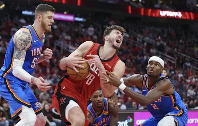 其他基本都是碾压!而雷霆拿到西部冠军的概率来到66%,拿到总冠军的概率是55%,这也创造纪录,NBA历史上有统计以来,雷霆是第一支赛季只打25场比赛的情况下,夺冠概率超过5成的球队。美媒提出一个疑问,谁能阻止这支雷霆(雷霆本赛季还没有让最强五人组同时出战:亚历山大+多特+杰威+霍姆格伦+哈滕)?球队实力冠绝联盟,无非两点,进攻很强,防守更强,从防守说起。本赛季防守效率第二的是勇士的111.9,雷霆和勇士的差距,等于勇士和防守效率联盟第25位快船(119.1)之间的差距。